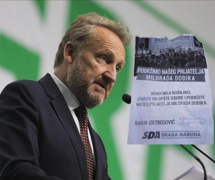 Godina je 2018. Predsjednik SDA, Bakir Izetbegović, javno i bez ikakvog stida poziva Bošnjake da izađu na izbore i glasaju za njegovog „prijatelja“ Milorad Dodik. Ne radi se o tračevima, interpretacijama ili političkom spinovanju. Radi se o plakatu, potpisu i jasnoj poruci: „Dragi moji Bošnjaci, izađite na opšte izbore i podržite našeg prijatelja Milorada Dodika.“